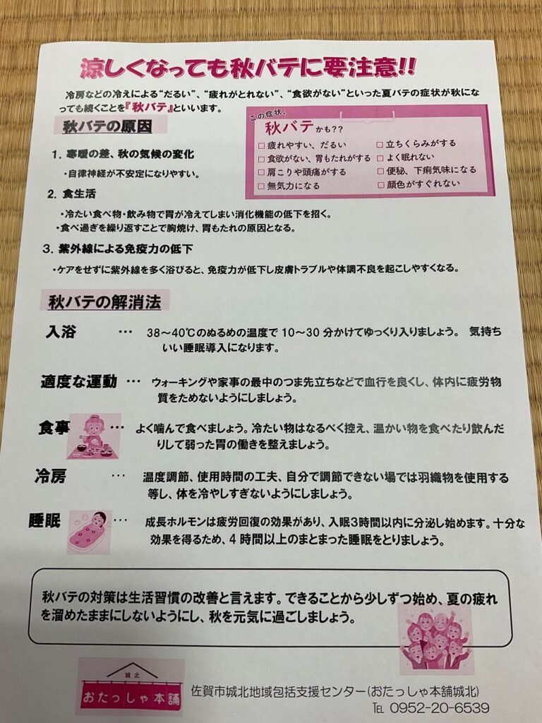 内容 おたっしゃ本舗城北 涼しくなっても秋バテに注意!