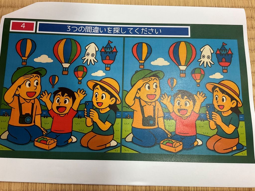 総勢32名の地域の皆様が参加されました。(^_-)-☆ 間違い探しでは佐賀に因んだ海苔 バルーン 呼子のイカについての豆知識をご紹介いたしました。19日のふれあいレクレーションでまたお会いしましょう。(^^)/