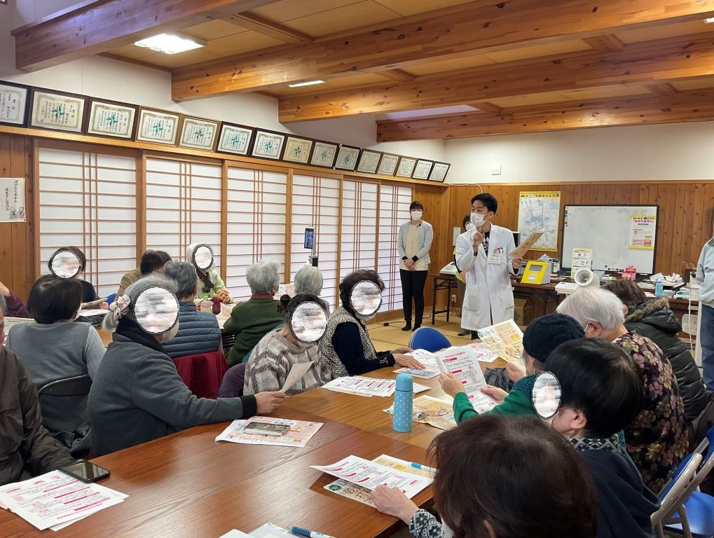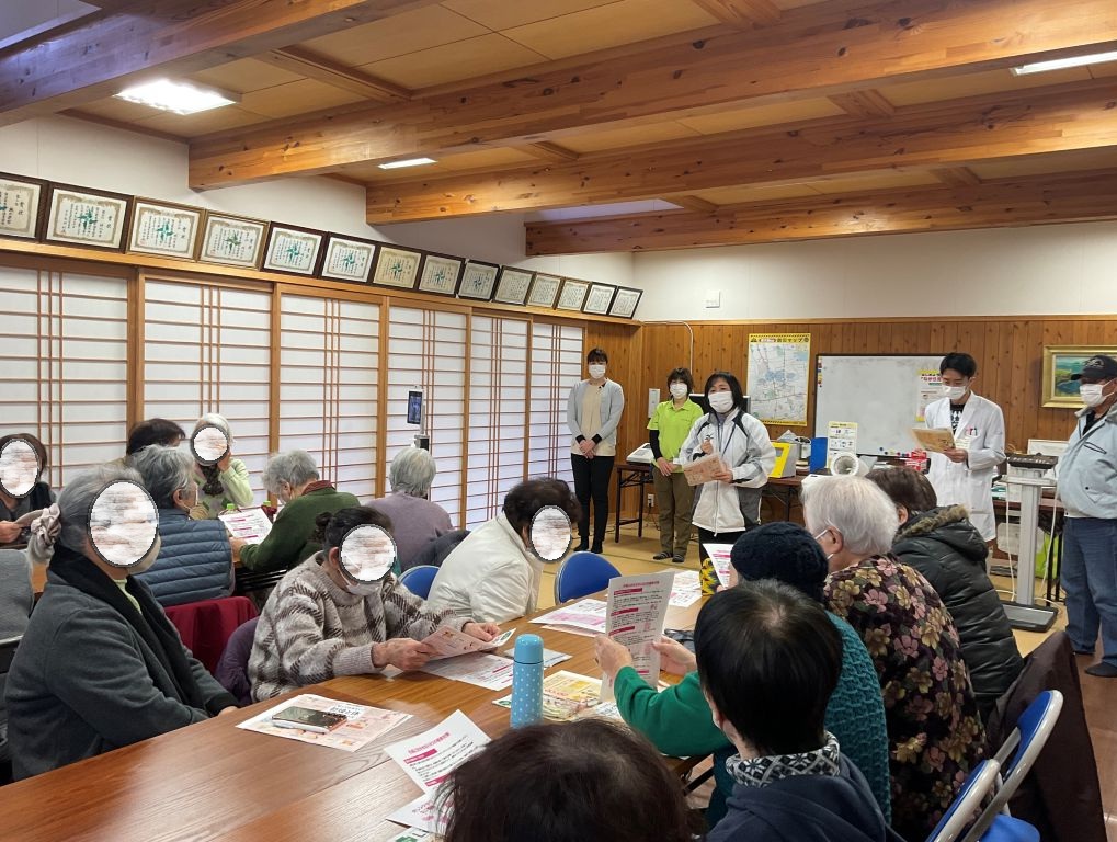 総勢34名の地域住民の皆様が参加されました。!(^^)! 2日後は節分という事で、医学部学生より節分の由来の説明があり、恵方巻の具材は単なる好みではなく、七福神にちなんだ「7種類の縁起物」。福を切らずに包み、丸ごといただくことで、1年の幸運を願う意味が込められているそうです。持ち帰りのお弁当のお他に、ちゃんと恵方巻が用意されてました。(^_-)-☆ 城北団地の皆様 また3月にお会いしましょう。